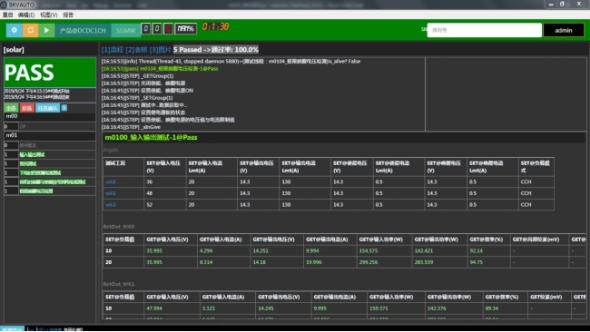启停,复位;产品选择,用例配置,设备配置;日志,数据,图表,监控显示;测试计时,测试产品数记录,通过率计算。数据上传MES系统。