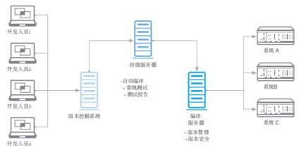 远程更新功能是属于软件版本管理的一部分,是为方波测试系统更新新功能,修复BUG的一个必要功能。测试软件开发人员可以远程将新的软件版本上传到版本服务器,然后由版本服务器推送到各个测试台的计算机中,示意图如下