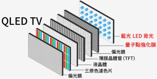 QLED起初是由「三星」创造的商标,到后来才慢慢演变成的一项全新技术。它通过使用「量子点技术」,透过植入至 QDEF(量子点强化膜)上,不同大小的「量子点」并在蓝色背光的撞击下,产生出纯净的红、绿、蓝三原色光线,用以提高关键图像的显示质量。