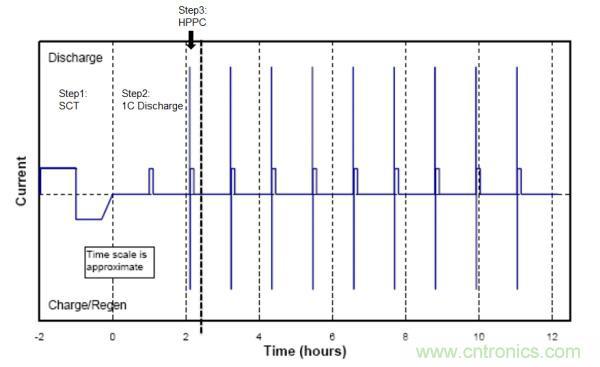 那么RPT测试需要包含哪些内容呢?首先容量衰减和内阻的增大是电池衰减的主要指标,其次RPT测试过程要尽量的简洁,否则可能出现冗长的检测过程造成了寿命影响因子的失真。一般情况下RPT测试由一次常温静态容量测试(SCT)和某个特定SOC点下的混合脉冲功率性能测试(HPPC)组成。 这样即可快速的获取电池容量和内阻这两个关键参数。