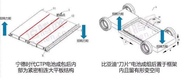 通过结构分析,我们可以看到,宁德时代CTP技术因为考虑到体积封装效率的最大化,大模组之间的连接可靠性更容易受到对角线反复切应力的影响,对于高压线束和冷却系统的连接挑战比较大,长期使用的可靠性有待验证。而比亚迪"刀片"电池实际上仍然保留了模组封装和电池包封装的整体构型,同时从专利图可见,其电池包封装将有可能根据车型需要,预留形变空间,避免超薄大电芯直接受力。从结构耐久性上看,比亚迪刀片电池封装更容易做出可靠的产品。